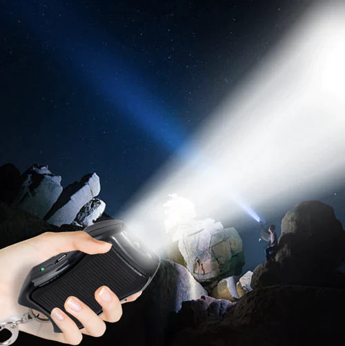Com exclusiva lanterna de longa duração acoplada, o Carregador Portátil Solar tem mais de 8 horas de Iluminação ininterruptos, garantindo sua segurança em quedas de luz, acampamentos ou imprevistos.