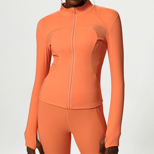 Women Fitness Running Jacket Solid Color Slim Fit Long Sleeve Yoga Shirt Breathable Zipper Workout Coat Female Sportswear